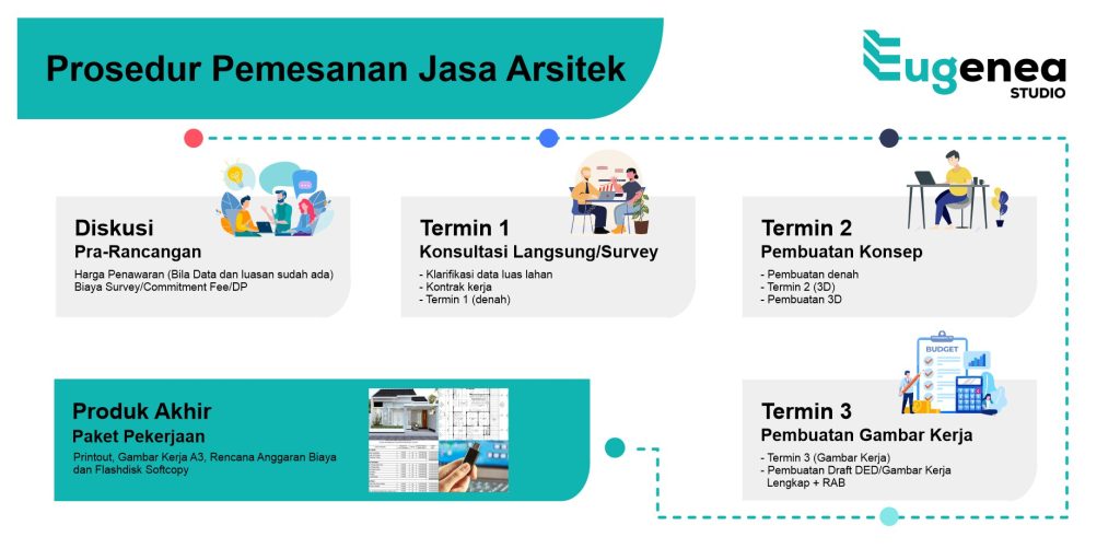 Pada tahap ini, arsitek akan berkomunikasi dengan anda mengenai desain yang diinginkan, termasuk denah dan ruangan sesuai dengan preferensi anda.